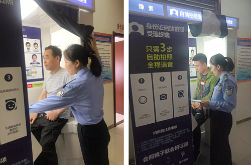 近日,在合阳县公安局党委的支持下,一台崭新的居民身份证自助拍照一体机“亮相”合阳县政务服务中心,全程办理身份证仅需3-4分钟,大大缩短了群众排队等候的时间。