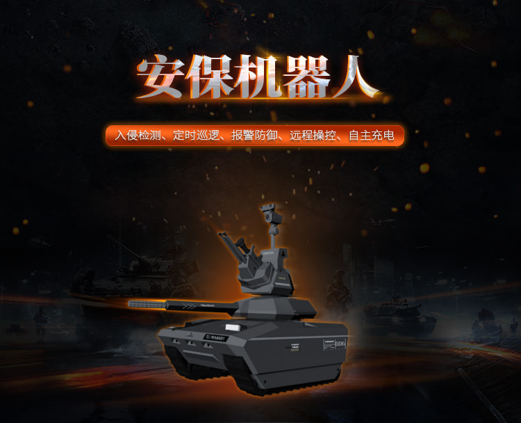 • 多种功能集于一体 安保机器人装载警报喇叭、爆闪灯、灭火器、催泪瓦斯等多级防护武器 集人防、物防、技防于一体 具有入侵检测、定时巡逻、报警防御、远程操控、自主充电等基本...
